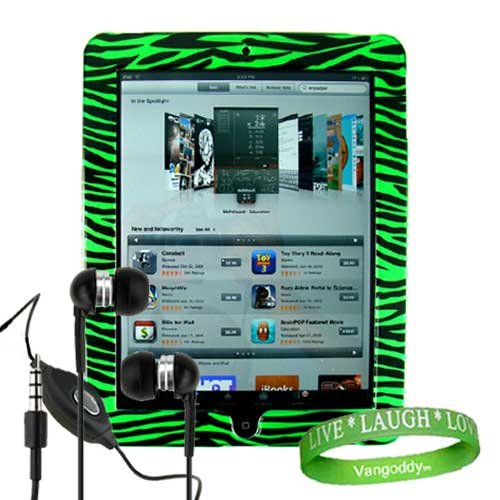 Stylishly Designed Hard Cover Snap on Case, iPad Cover for Apple iPad MB292LL/A Tablet (16GB, 32GB, Wifi + 3G)- Green Zebra Animal Print + ipad Earphones with Microphone + Live * Laugh * Love VG Silicone Wrist band!!! Review